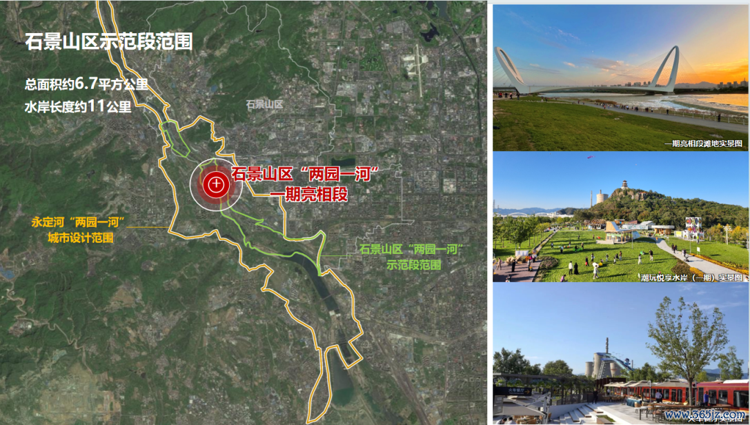 当作京西“两园一河”协同发展的中枢承载区,石景山区在“两园一河”揣测中触及面积达38.1闲居公里,占总限制的四成以上,其中6.7闲居公里示范段以“一轴一携带派别,三区九段营彩岸”的空间时势,绘就山水相融的活力长卷。